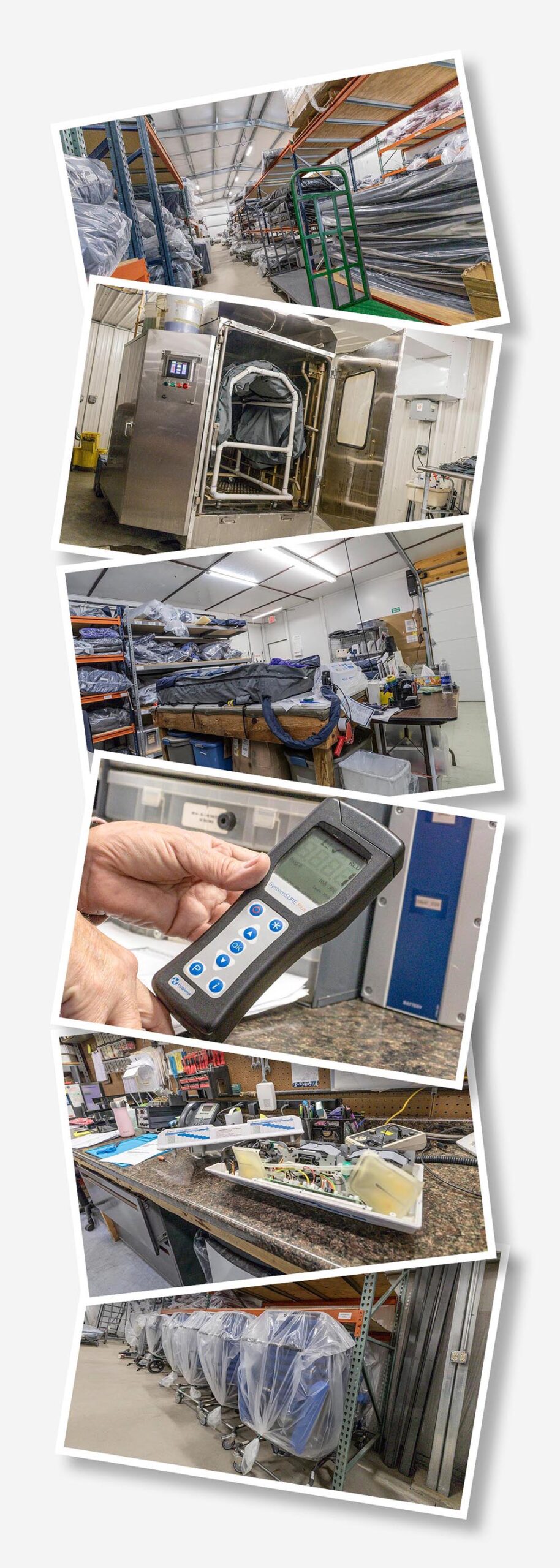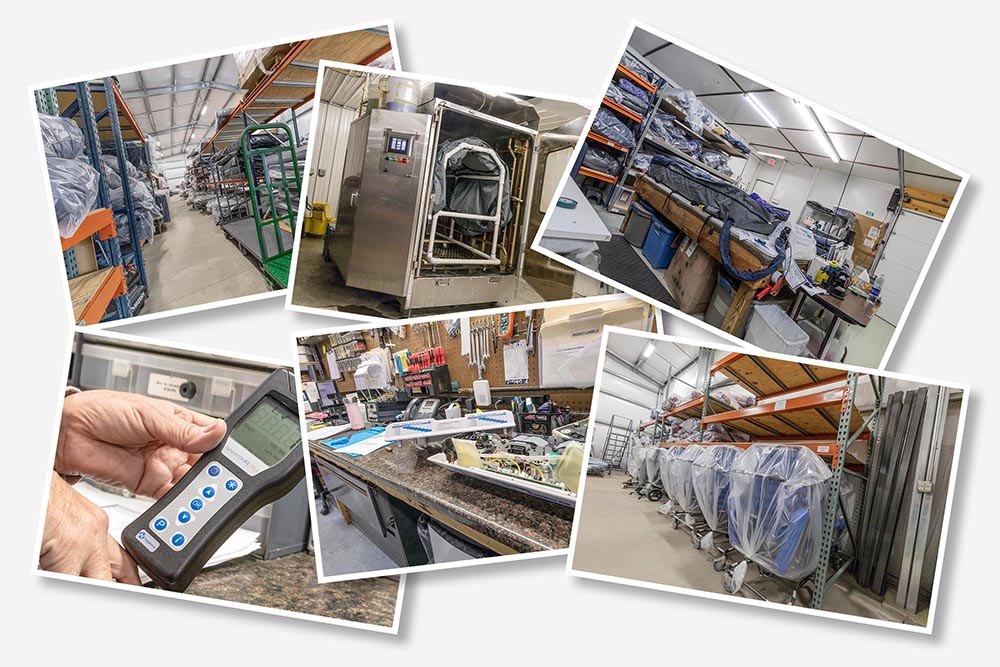 A uniquely exclusive cleaning machine is used to clean and disinfect equipment.